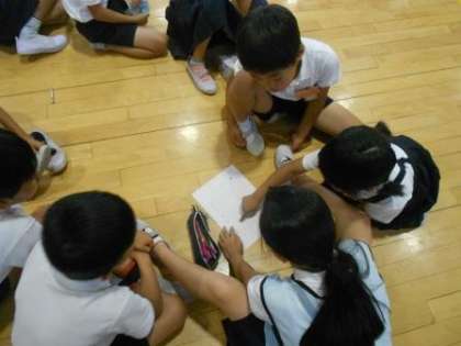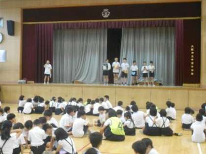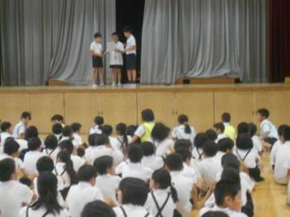 6月30日(金) 今日は児童集会がありました。舞台の上を何が横切ったかを当てるゲームをしました。黒板消しはなかなか難しかったです。
