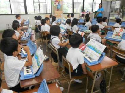 7月5日(水) 2年生の音楽の授業です。今日は鍵盤ハーモニカや手話を用いて歌をうたっていました。歌詞に合わせて手話ができていました。教室には、七夕の短冊に願い事が書かれていました。とても素敵でした。
