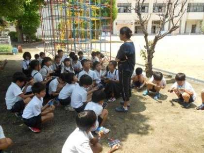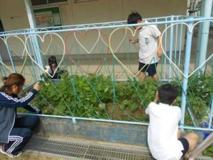 委員会活動では、学習園の草抜きに汗を流していました。ミニトマトが赤く色づき始めています。
