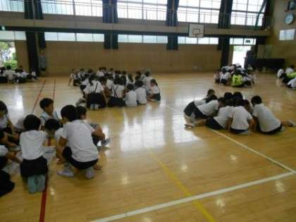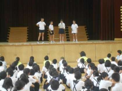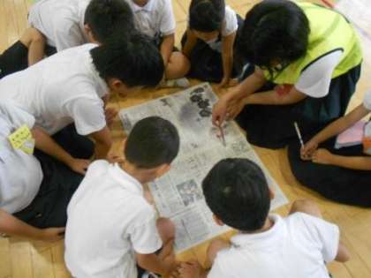 7月7日(金) 朝の児童集会では、「文字さがし」をしました。各班に新聞紙を配り、司会の子どもから指示された文字を紙面から探します。小さな字ですが、子どもたちはすぐに見つけていました。びっくりしました。