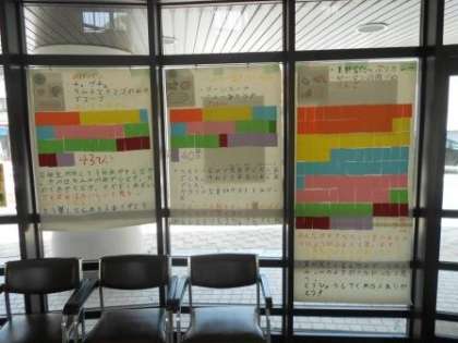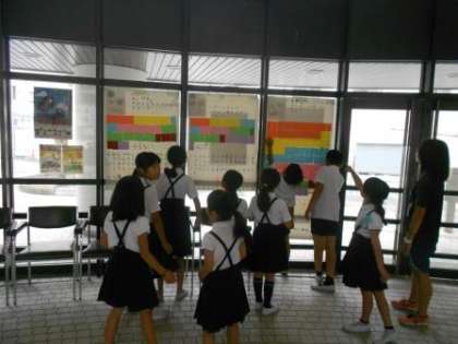 玄関ピロティーに、先日給食委員会が発表した献立の投票結果がはり出されていました。1番人気は「夏野菜たっぷりカレーライス・ピーマン肉づめ・りんご」でした。