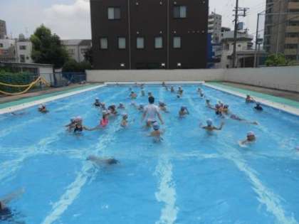 3時間目は3・4年生のプール水泳でした。今日はプールの縦を使って、水中でしっかり息を出す練習をしました。このことが、息継ぎにつながります。