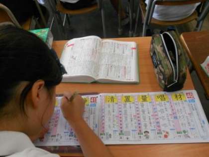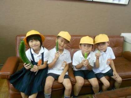 7月8日(土) 今日は土曜授業と集団下校を行いました。1年生は大きなキュウリなど、学習園でとれた野菜を校長室に持ってきてくれました。4年生は漢字辞典を置き、新出漢字の学習をしていました。