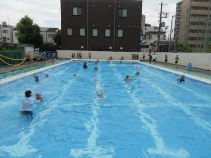 7月18日(火) 2時間目は3・4年生が水泳の学習でした。水の中で息をはくことが上達してきました。プールの縦を使ってどんどん練習しています。最後は少し、自由練習の時間がありました。