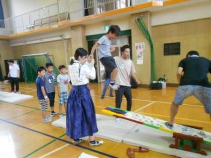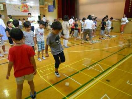 中学年の様子です。体育館での活動が中心でした。大変暑かったですが、楽しく活動していました。