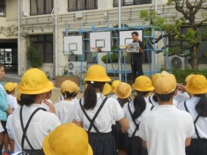 9月11日(月) 朝は児童朝会がありました。9日(土)に100mで9秒98の日本記録を樹立した桐生選手のお話をしました。子どもたちにも、目標達成するための努力の大切さを学んでもらえるとうれしいです。