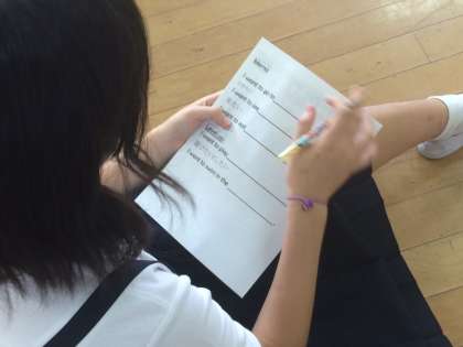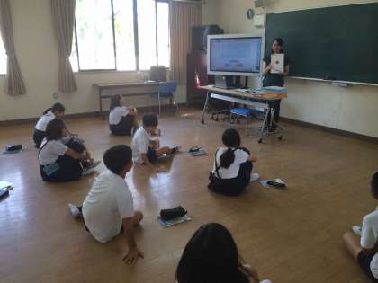 六年生の外国語学習の様子です。今日は関心のある国のことについて、英語を使って学習していました。