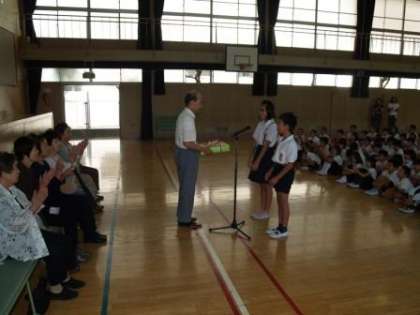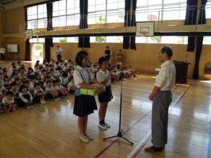9月21日(木) フリータイムに「しおり贈呈式」を行いました。中道地域の長寿会の皆様が7名お越しいただきました。子どもたちが手作りのしおりをお渡しさせていただきました。長寿会の皆様からは雑巾をいただきました。大切に使わせていただきます。子どもたちの素敵な歌声、リコーダーも聞いていただきました。24日(日)の敬老祝賀会には、6年生が8名参加させていただきます。子どもたちと地域の皆様との交流する機会はとても大切だと思います。これからもよろしくお願いいたします。