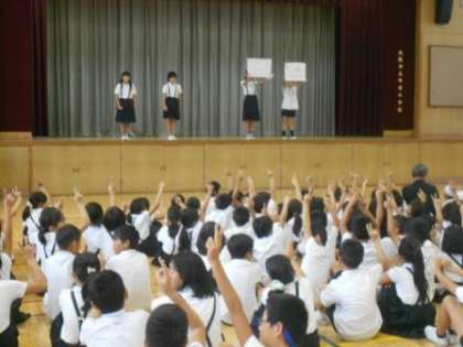 フリータイムは環境委員会の発表でした。クイズを取り入れてわかりやすく発表できました。みんなで中道小学校を美しい学校にしていきましょう。