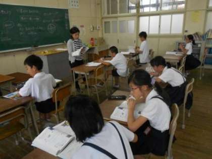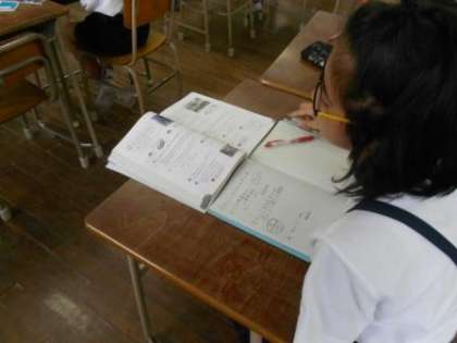 6年生の算数の学習です。少人数に分かれて、「速さ」の学習に取り組んでいました。一人一人集中して授業に取り組んでいます。