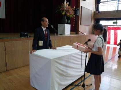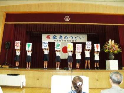 9月24日(日) 中道地域の敬老祝賀会が開催されました。皆様、おめでとうございます。本校6年生児童が代表であいさつをさせていただきました。