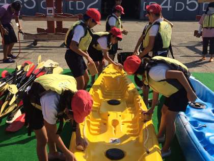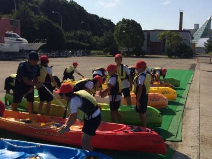陸に上がってからは、海水を拭き、自分たちでカヌーをしまいます。