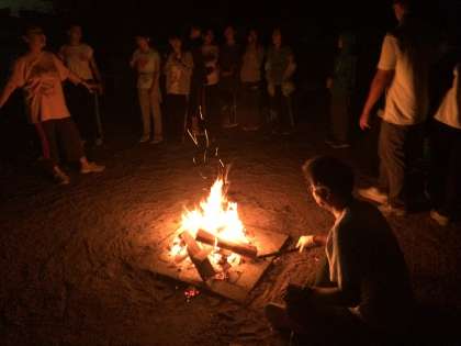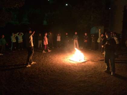 夕食後はキャンプファイヤーで楽しみました。子どもたちも先生も楽しいスタンツをしてくれていました。大きな声を出し、体を動かして大盛り上がりでした。