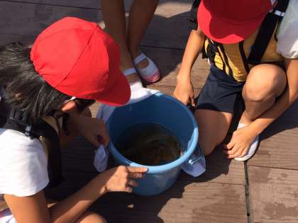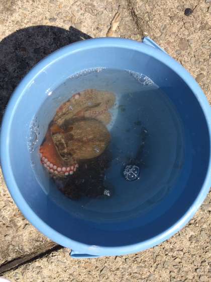 船着場のブロックに大きなタコが入っていました。とても珍しいそうです、子どもたちも大騒ぎでした!
