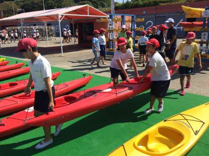 午後は一人乗りカヌー体験でした。昨日、二人乗りカヌー体験をしましたので、準備も慣れてスムーズにできました。