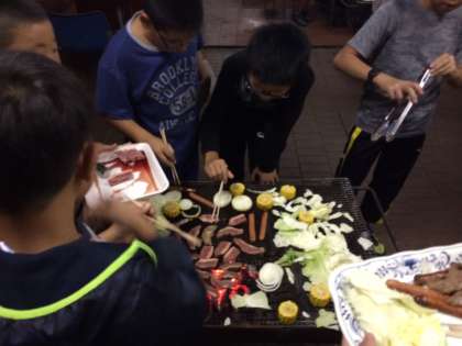 焼けたら食べています。交代で焼いていました。先生方も火の管理で大変でしたが、子どもたちは焼けた食材をお皿に乗せてくれます。優しい子どもたちです!