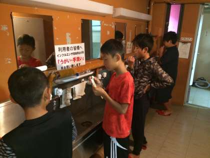 朝の集いでは、看護師さんから、健康面の確認をしていただきました。