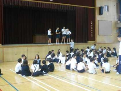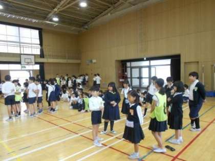 10月6日(金) 児童集会がありました。雨が降りそうだったので、講堂で○×ゲームを行いました。学校に関係するクイズを考えてくれていました。