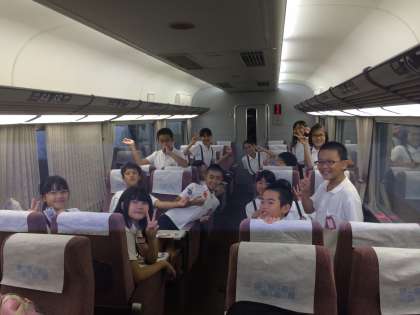 上本町駅から修学旅行特別列車あおぞら号で出発しました!仲良しの15人なので、電車の中でもみんなゲームをしながら楽しく過ごしています。