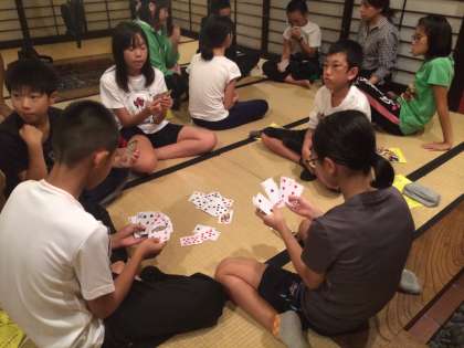 夕食後は買い物を済ませ、夜の会を楽しんでいました。トランプやあっち向いてホイ、マジックショー、古今東西などとても盛り上がりました!