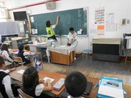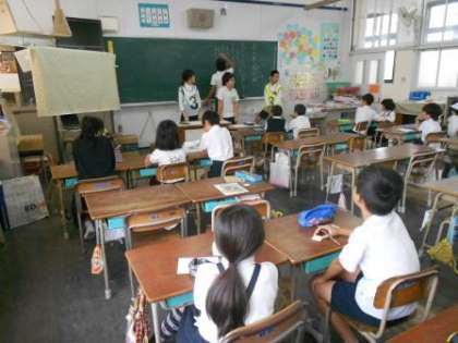 10月13日(金) フリータイムにたてわり班活動を行いました。19日に予定している「中道ラリー」の班活動について話し合いました。各班いろいろな遊びが出ていました。19日(木)の天候が心配です…