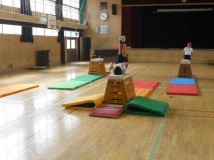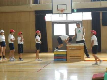 6年生は体育館で跳び箱の学習を行っていました。6年生はさすがに難しい技に取り組んでいました。どんどんチャレンジしている姿に感心しました。