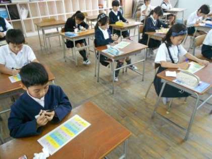 10月19日(木) 3年算数の授業の様子です。大きな位の学習でしたが、ホワイトボードのようにマジックで書いても消すことができる教具を作成し、わかりやすく学習していました。