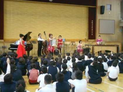 3時間目は音楽鑑賞会でした。アンサンブル・レネットさんの演奏を聴かせていただきました。子どもたちがよく知っている曲を中心に、参加もさせていただき、あっという間の時間を過ごしました。素敵な音楽鑑賞会でした!