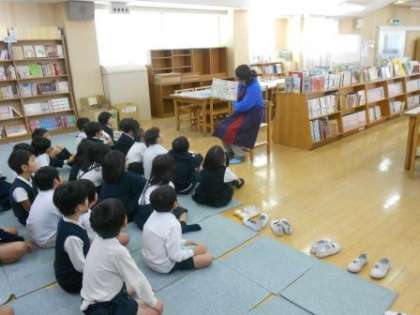 1年生の算数の学習では、黒板に自分の考えを書いて説明していました。黒板にしっかり字が書けていることに感心しました。2年生は、図書館補助員の方に絵本の読み聞かせをしていただいていました。大変熱心に聞くことができていました。