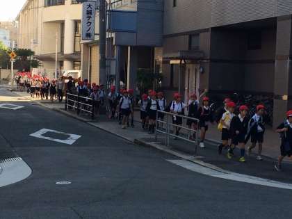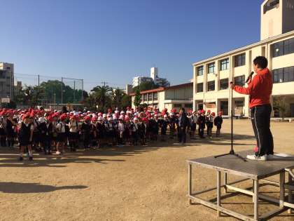 11月2日 今日は雨で延期になった中道ラリーです。全校児童が鶴見緑地に出かけます。予定通り出発しました。