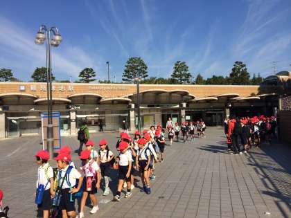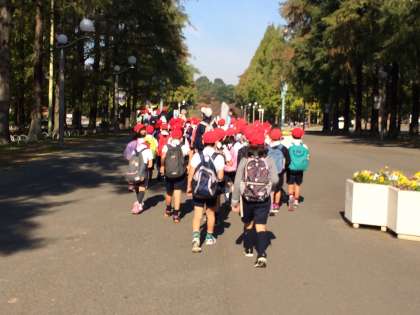 鶴見緑地に到着しました。オリエンテーリングのスタートをめざします。