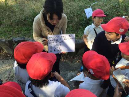 チェックポイントで担当の先生からクイズを出してもらっています。