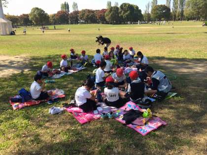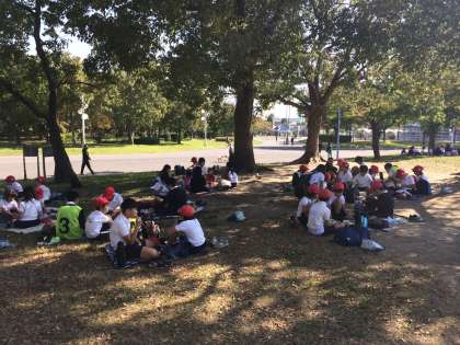 たてわり班でお弁当を食べました。とてもいい天気で暑いぐらいです。