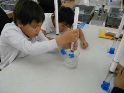 11月9日(木) 4年生の理科と図工の学習の様子です。理科は水の性質について、実験を行いました。密閉された水は、押してもびくともしない様子に子どもたちは驚いていました。