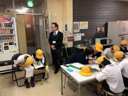 見学を終えて、副店長さんが子どもたちの質問に受け答えしていただきました。子どもたちの質問に丁寧に対応していただき、大変よくわかりました。