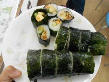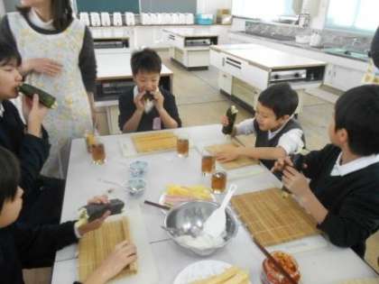 キンパをおいしくいただきました。保護者の皆様ありがとうございました。