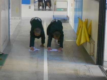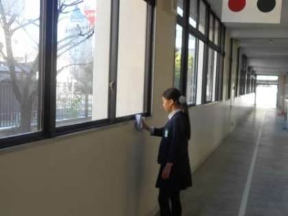 大掃除では、窓を拭いたり、廊下を雑巾がけしたりして、一生懸命掃除をがんばっていました。