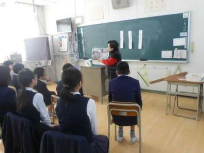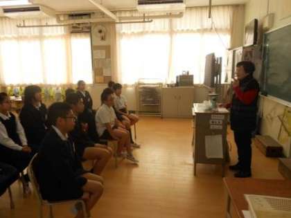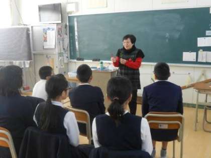4時間目の6年生の教室の様子です。「南天」の実を持ってきていただき、お話もしていただきました。