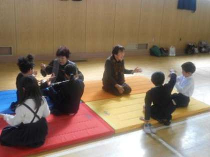 2月14日(水) 3・4時間目は、1年生の子どもたちが中道地域の長寿会の皆様に昔遊びを教えていただきました。「こままわし」「はごいた」「おてだま」「けんだま」「おりがみ」を順番に体験させていただきました。「こままわし」や「けんだま」など、子どもたちが日ごろ触れる機会が少ない遊びを経験することはとても有意義なことだと思います。今度は、1年生の子どもたちが幼稚園のおともだちに遊びを教えてあげる交流会があります。子どもたちの成長した姿を見ることがとても楽しみです。