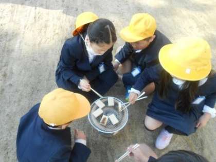 おもちを焼いている様子です。焼き立ては、やわらかくておいしいです。