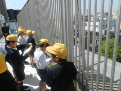3年生は社会科の学習で、玉津中学校の5階に上がらせていただきました。中道小学校には屋上がありませんので、校区の様子を校舎の上から見学させていただきました。ハルカスや生駒山も確認することができました。中学校の校長先生にもお話をしていただきました。ありがとうございました。