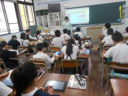 1年生は、今年から導入されている国語のデジタル教科書を使って、授業を行っていました。4年生は、タブレットを使って、社会科の学習を行っていました。子どもたちは熱心に学習に取り組んでいます。