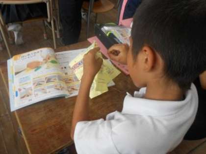5年生は家庭科の時間に裁縫を行っていました。玉結び・玉どめの学習を行っていました。慣れない裁縫でしたが、子どもたちはがんばっていました。
