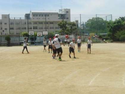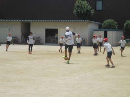 練習の後は、子どもたちVSコーチ2人でゲームをしました。子どもたちが10人ぐらいで挑んでもコーチに軽々とかわされていました。さすがプロです!でも、子どもたちは大喜びでした!