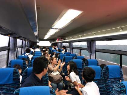 予定通り淡輪青少年海洋センターに到着しました。バスの中でもみんなとっても元気でした!
