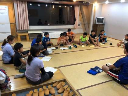 2日目のリーダー会議を行いました。リーダーは盛りだくさんの活動内容を振り返り、反省点を話していました。