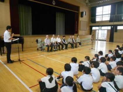 子どもたちからはしおりをお渡しさせていただき、「野に咲く花のように」を合唱させていただきました。6年生の代表児童は、感謝の気持ちをしっかり伝えてくれていました。
