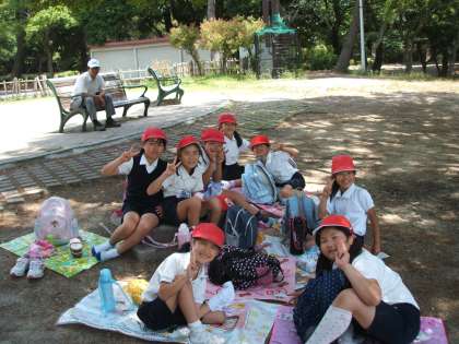 3・4年生の遠足は、服部緑地に行きました。古民家博物館でグループごとにオリエンテーリングをしました。