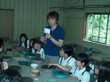 5年生は、地域や保護者の方々と一緒にバスに乗って、滋賀県の信楽に陶芸をしに行きました。このふれあい陶芸は、中道小学校の特色ある行事です。地域の方々は、この行事をとても楽しみにしています。本校には、陶芸のかまがあり、一年間で3回(学期に1回)陶芸をします。3学期には、全校生がつくった作品を展示する陶芸展が開催されます。