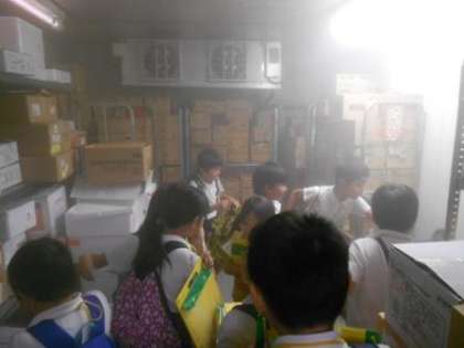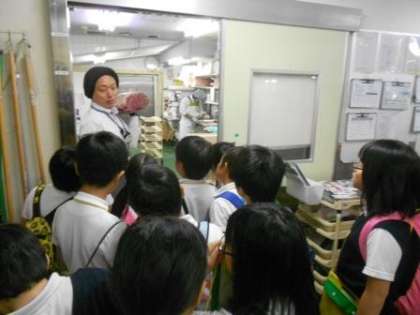 売り場の見学の後は、普段見ることができないバックヤードの見学をさせていただきました。お肉を切っている場所や冷凍庫をけんがくさせていただき、子どもたちは興味津々でお話を聞いていました。見学の後は、子どもたちからのたくさんの質問に答えていただき、学習を深めることができました。